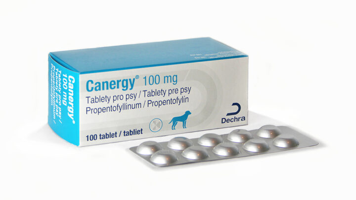 Přípravek s účinnou látkou Propentofyllinum ve formě tablet určený pro zlepšení periferního a cerebrovaskulárního prokrvení cév a zlepšení netečnosti, letargie a celkového chování u psů.